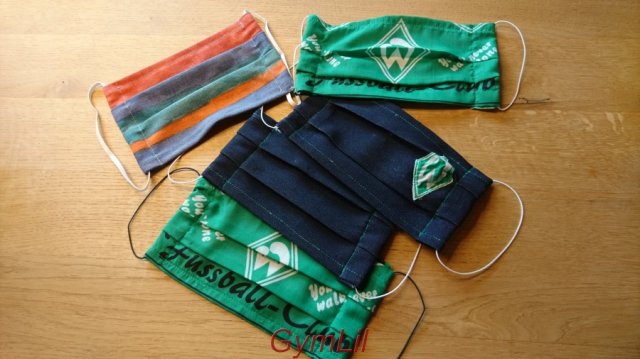 Es stellte sich heraus, dass das Nähen der Masken doch gar nicht einfach war. So mancher Wutausbruch war durchaus zu verzeichnen. Außerdem war das benötigte Material, insbesondere Gummiband und Draht, bald nicht mehr in den Geschäften zu bekommen. Mit viel Kreativität und großem Geschick entstanden aber trotzdem viele wunderschöne Masken in allen möglichen Farben und Mustern, wie man auf den Fotos sehen kann!
