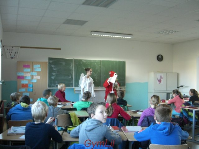 Die Schülerinnen und Schüler des 5. Jahrgangs müssen dieses Jahr wohl sehr artig gewesen sein: Erst wurden sie im Forum vom Jahrgang 6 mit einer Aufführung der Märchenoper „Hänsel und Gretel" beschenkt – und das mitten während der Unterrichtszeit! Und dann kamen auch noch Nikoläuse und Engel in die Klassen.