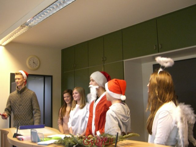 Da wurden schnell Gedichte aufgesagt oder Weihnachtslieder gesungen und geflötet. Ein besonders vorwitziger Nikolaus ließ sogar die Mathematiklehrerin etwas vortragen. In einer anderen Klasse war dagegen der Mathematiklehrer der Vorwitzige: Dort mussten Nikolaus und Engel eine mathematische Gleichung lösen, bevor sie ihre Schokoladenweihnachtsmänner verteilen durften.