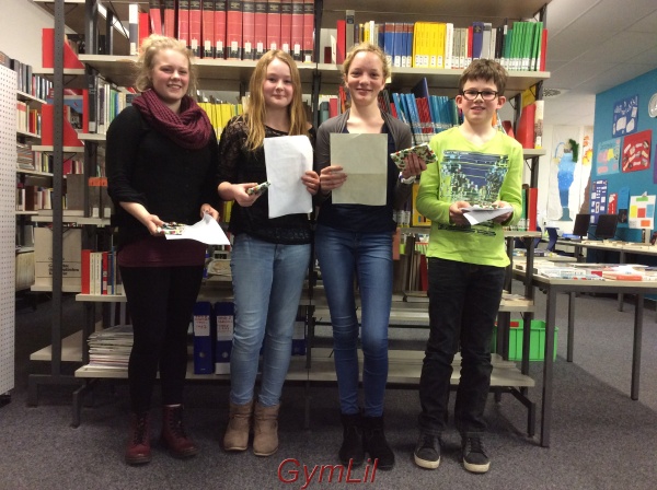 5. Klasse: Maria Lohmann Mendoza (5.3), Tuija Berends (5.5), Arne Schmidt (5.3) und Katharina Helmken (5.4)6. Klasse: Mark Zittlau (6.4), Marleen Runge (6.3), Nante Habeck (6.3) und Amelie Nobel (6.2)