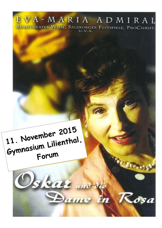 Eva – Maria Admiral, Schauspielerin am Burgtheater in Wien, wird „Oskar und die Dame in Rosa“ als Solo - Theaterstück präsentieren, nach dem gleichnamigen Bestseller von Eric E. Schmitt.