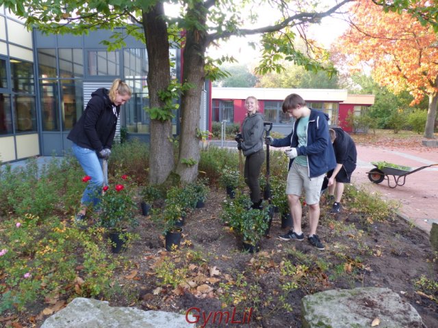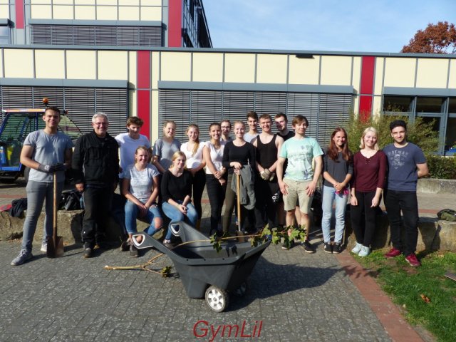 Wir, der Erdkunde- und Seminarfachkurs „EK-H91“ aus dem 12. Jahrgang haben in den vergangenen Wochen das Projekt „GymlilGoesGreen“ ausgearbeitet. Durch die Hitze des letzten Sommers sind viele Pflanzen unseres Schulgrundstücks vertrocknet und sollten durch neue Rosen und Sträucher ersetzt werden, um dem Klimawandel ein wenig entgegen zu wirken. Finanzielle und tatkräftige Unterstützung bei unserem Projekt bekamen wir von der „Klimaretter AG“ unserer Schule.