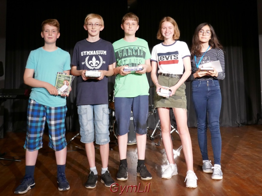 Die Jahrgangsbesten im Wettbewerb Big Challenge sind: Quentin Tyler Meyerdierks (Jahrgang 5), Levin Eickhoff (Jahrgang 6), Yasna Amiri (Jahrgang 7) und Jan Wippern (Jahrgang 8). Insgesamt haben sich über 500 Schülerinnen und Schüler am Wettbewerb beteiligt.